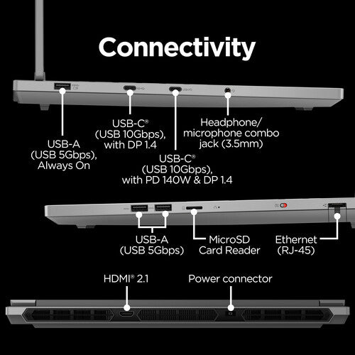 ✔ Comprehensive Connectivity: USB-C, HDMI 2.1, Wi-Fi 6E, and Bluetooth 5.2 for superior expandability and speed